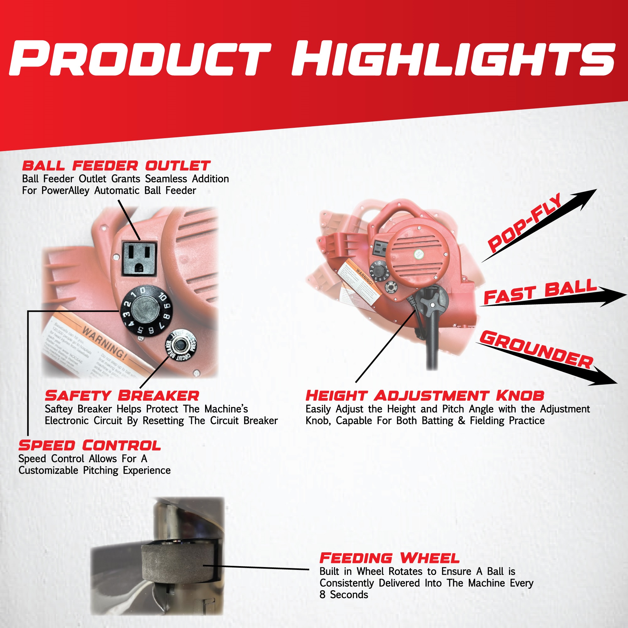 • Adjustable Pitch Height: Customize the pitch trajectory to practice against fastballs, pop flies, and grounders.