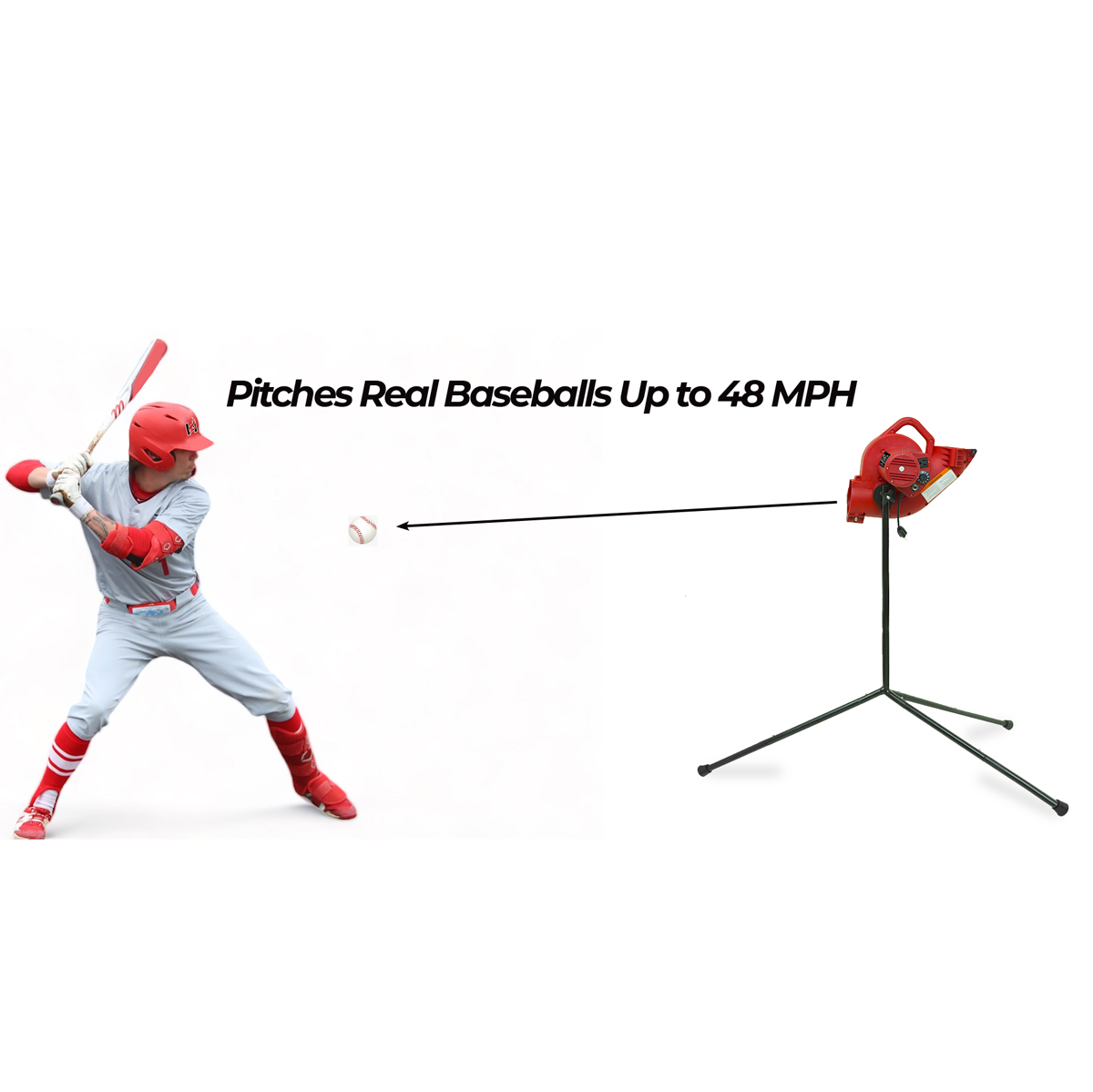 • Delivers fastballs at speeds ranging from 10 to 48 MPH, allowing hitters to fine-tune their swing.